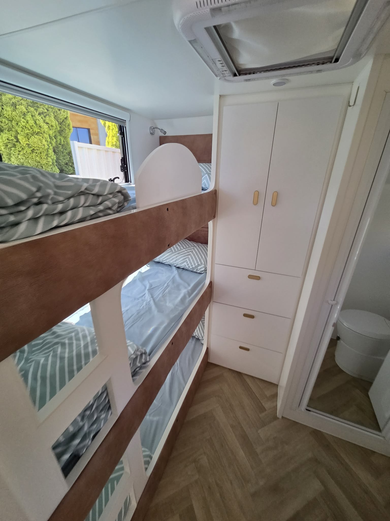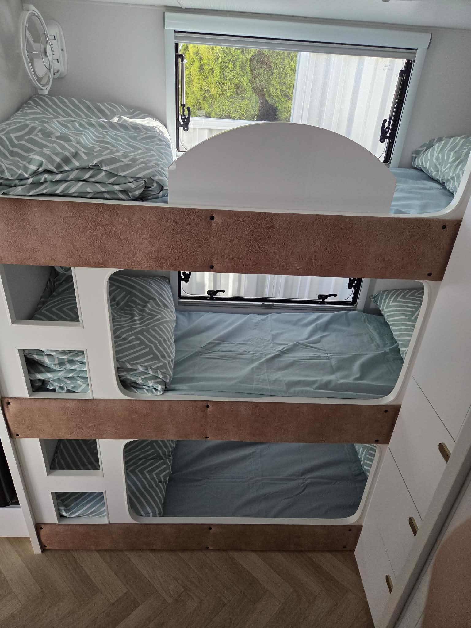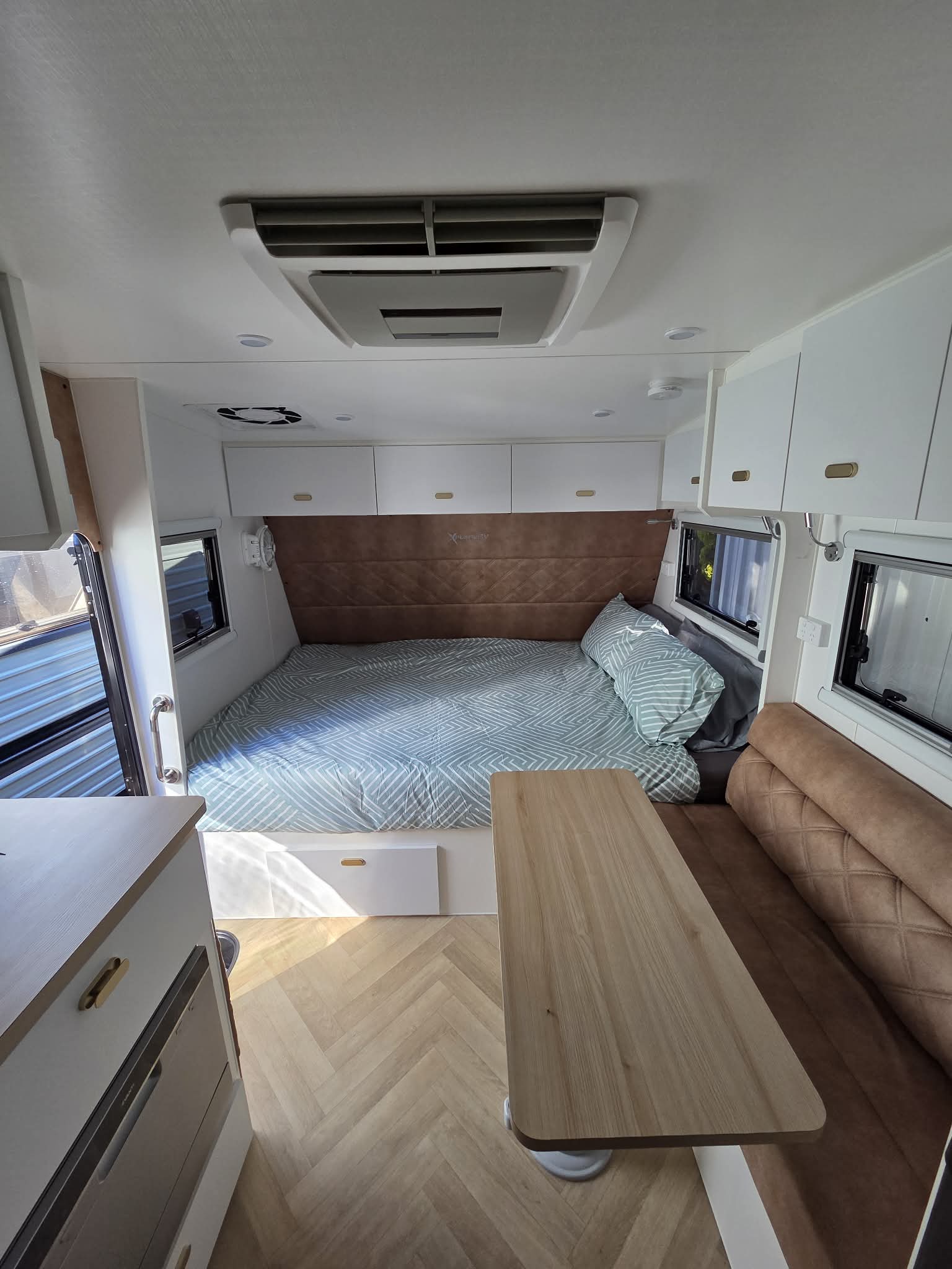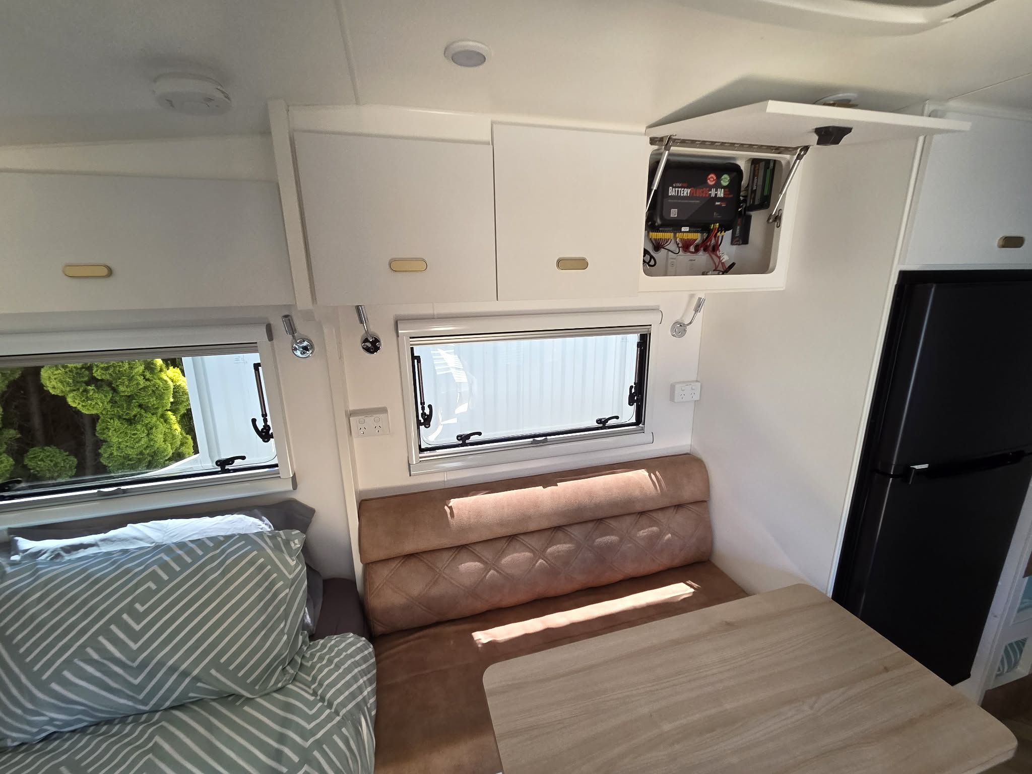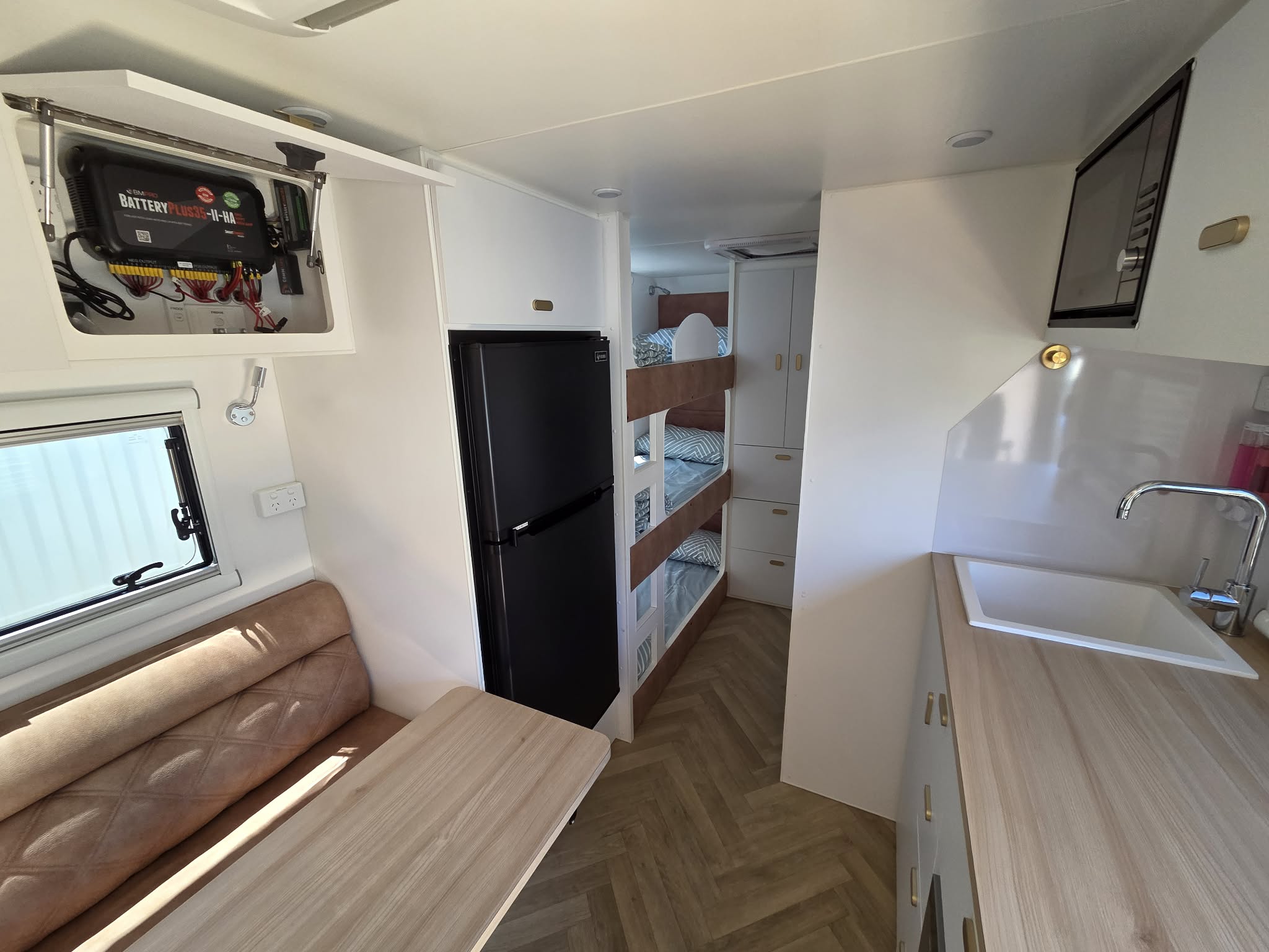 We’re a young family who love camping. If you have a baby like us you’ll be pleased to know we head off with the trailer into the sunset knowing with confidence its all nice & easy! There is plenty of room for a portacot in the other end of the camper which quite easily turns into more bedding space for bigger kids all the way up to adult sized kids. Ask us about your situation & we’ll let you know some of the tips we have from doing it all regularly ourselves!